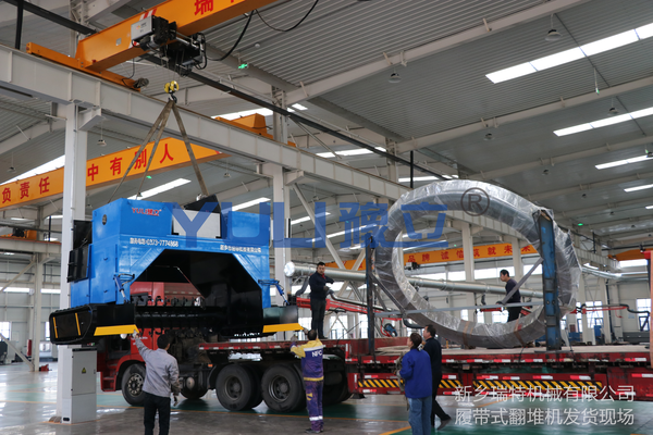 3月9日上午,新鄉瑞特機械機械有限公司生產的豫立牌履帶式翻堆機裝車發貨。